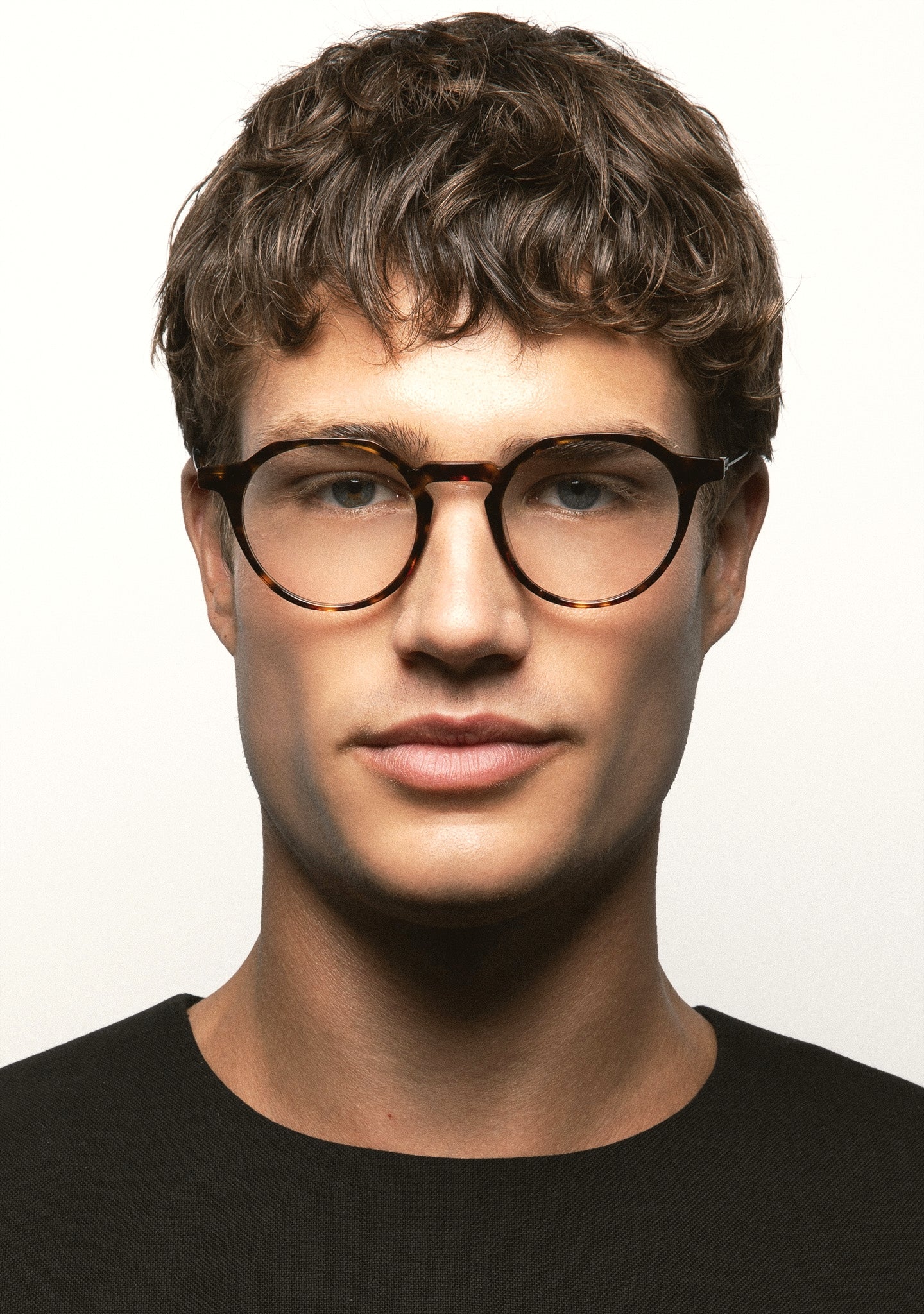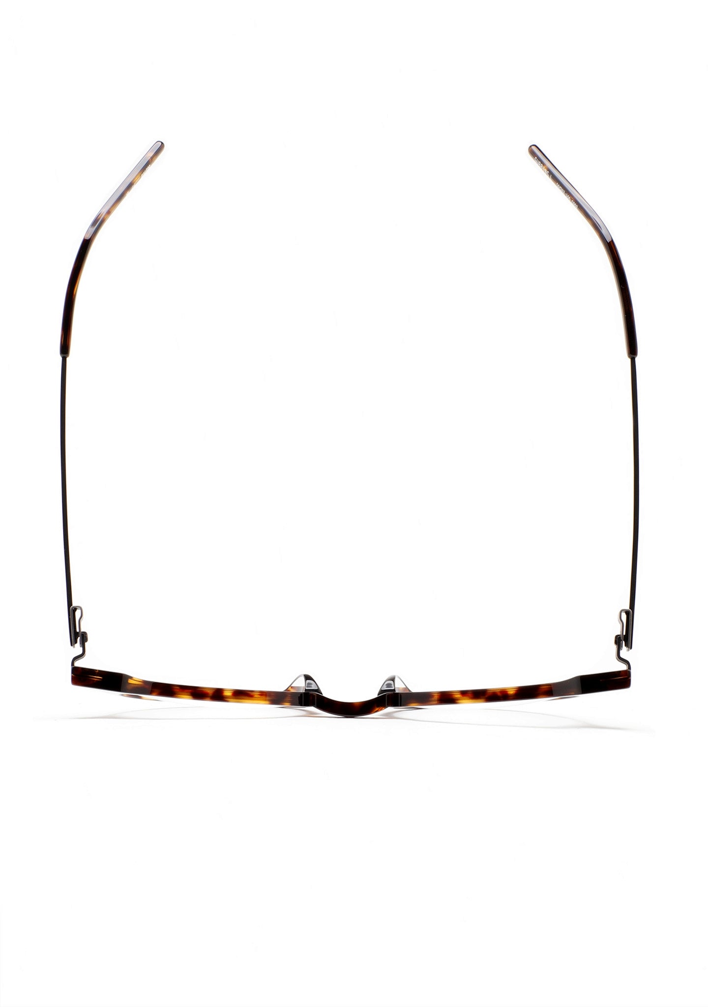 Occhiali da vista Pantos con sopracciglio piatto e ponte a chiave. Frontale in acetato high density havana marrone scuro. Aste in acciaio inox nero opaco con terminale in acetato havana marrone scuro. Aste con la nuova cerniera senza viti. Piastrine in acetato integrate. Realizzati a mano. Occhiali disponibili in due misure: media (M) e grande (L).